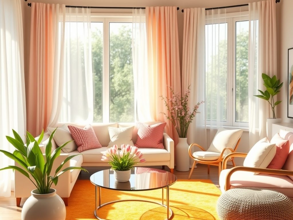 Stwórz wiosenną atmosferę w swoim domu dzięki wiosennym dekoracjom okiennym i stołowym. Zastosuj lekkie firanki oraz tiulowe zasłony, które skutecznie przepuszczają naturalne światło, rozświetlając pomieszczenie. Wybierz jasne kolory, takie jak biel, pastelowy róż, błękit i beże, aby wprowadzić świeżość. Zastąp ciężkie zimowe zasłony, aby zyskać lekkość we wnętrzu.