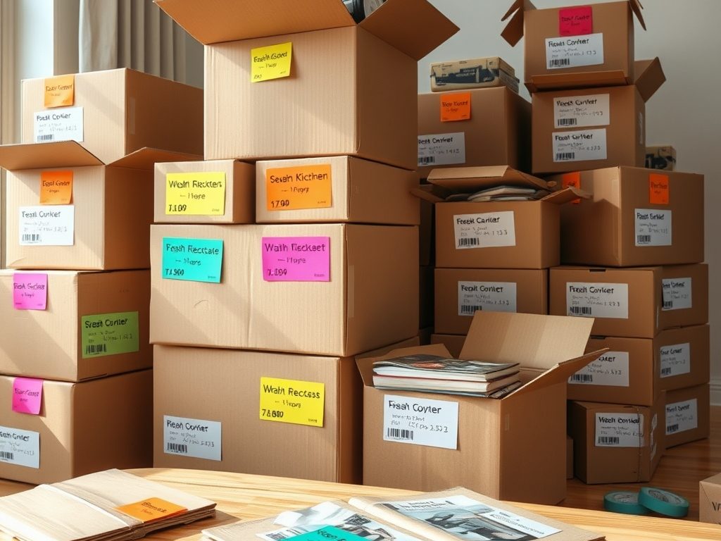 Użyj systemu numerowania oraz kolorystycznych oznaczeń, aby skutecznie organizować kartony podczas przeprowadzki. Numerowanie kartonów sprawia, że możesz szybko sprawdzić ich zawartość oraz kompletność przesyłki. Przydziel każdemu kartonowi unikalny numer, aby ułatwić odnalezienie go w nowym miejscu.